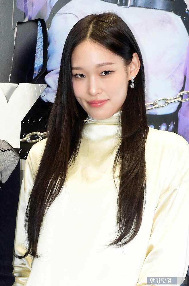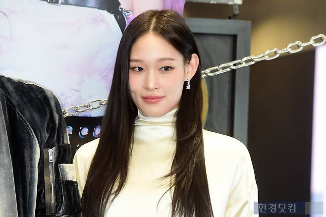 그룹 올데이 프로젝트(ALLDAY PROJECT) 애니가 23일 오후 서울 역삼동 일상비일상의틈byU+에서 열린 데뷔 기념 팝업 스토어 오픈 행사에 참석해 포즈를 취하고 있다.