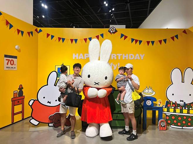 6월 21일은 네덜란드 토끼 캐릭터 '미피(Miffy)'가 세상에 등장한 지 70주년이 되는 날이다. 장마철 특유의 비가 오락가락하는 날씨에도 불구하고 서울 인사동 '센트럴뮤지엄'에서는 미피 생일을 축하하려는 관람객들로 북적였다. 전시 <미피와 마법 우체통>을 찾은 이들은 서울·경기 뿐 아니라 충북 제천처럼 먼 지역에서 온 가족 단위 관람객까지 다양했다.