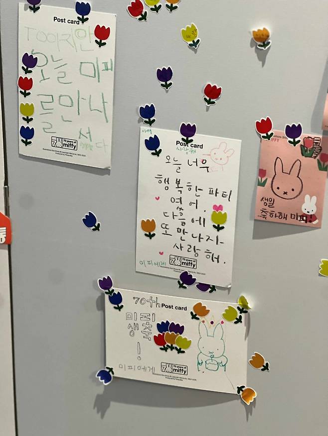 어린이 관란객들은 미피에게 손편지를 쓰고, 그림을 그리거나 메시지를 적으며 각자의 방식으로 미피의 생일을 축하했다. 정성껏 작성한 편지는 전시 종료 다음 날인 8월 18일 실제로 발송될 예정이다. 영어로 "미피야, 생일 축하해. 사랑해!"라고 적은 정채은(6) 어린이는 수줍은 미소를 지었다.