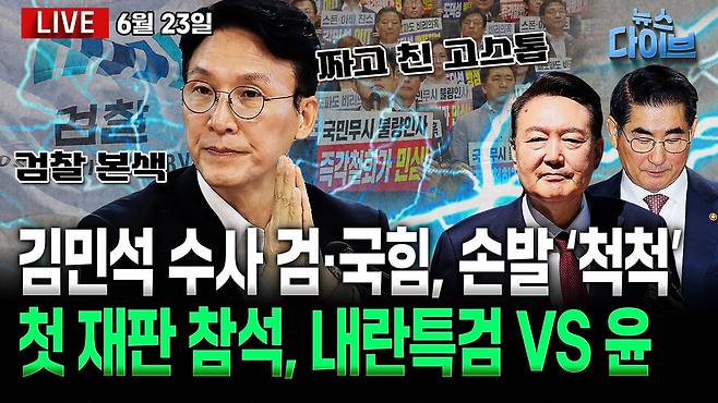 속보, 이재명 대통령 11개 부처 장관 후보자 지명! 검찰, 김민석 사건 고속 수사 배당... '정치검찰 최후 발악'? 내란 특검, 첫 윤석열 재판 참석! 이재명·여야 지도부 첫 회동에 'A4 청구서' 내민 국민의힘! 오늘(6월 23일) 뉴스 다이브 많은 시청 바랍니다.
