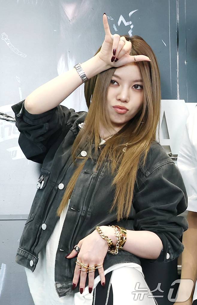 (서울=뉴스1) 권현진 기자 = 혼성 5인 그룹 올데이프로젝트(ALLDAY PROJECT) 베일리가 23일 서울 강남구 일상비일상의틈byU+에서 열린 데뷔 싱글 '페이머스'(FAMOUS) 발매 기념 팝업 스토어 포토콜 행사에서 포즈를 취하고 있다. 2025.6.23/뉴스1
