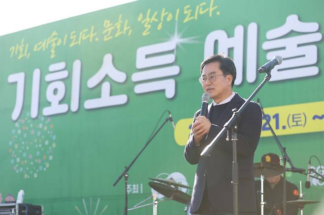 | ▲ 김동연 경기도지사가 경기아트센터에서 열린 '2023 기회소득 예술인 페스티벌'에서 인사말을 하고 있다. |
