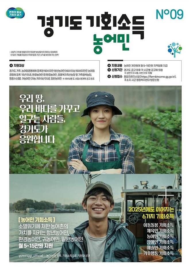 | ▲ 김동연 경기도지사는 민선 8기 출범 3년 만에 ‘기회’를 정책의 중심에 세우며 경기도를 대한민국 ‘기회수도’로 이끌었다. 사진은 '농어민 기회소득' 포스터. |