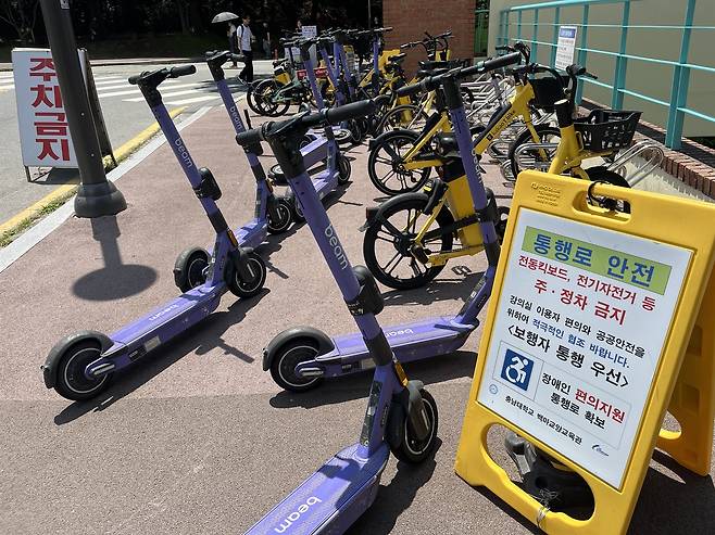 캠퍼스 달리는 전동 킥보드, 안전 규칙은 멈췄다