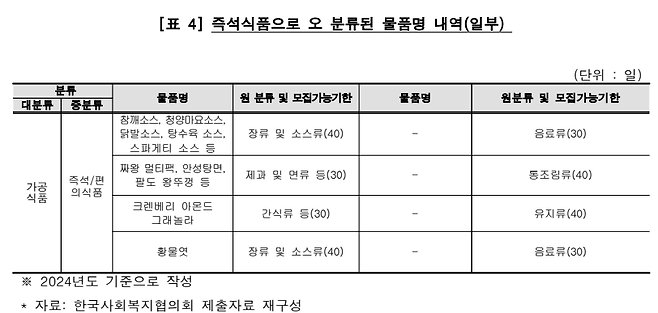 또, 식품 분류에 대한 운영이 미흡한 부분도 이번 종합감사를 통해 드러났습니다.