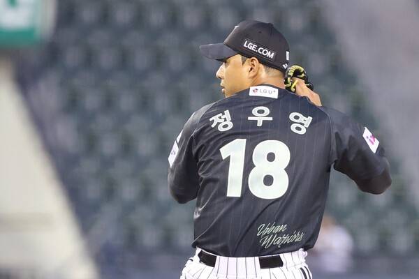 정우영은 대타 김인태를 상대로도 볼 3개를 먼저 던지며 코너에 몰렸다. 4구에 스트라이크 하나를 간신히 잡았으나 5구가 존에서 크게 벗어났다. 베이스가 가득 찼다. 결국 LG 벤치는 정우영을 내리고 성동현을 투입했다. 뒤이은 투수들이 정우영의 책임 주자 3명을 전부 홈으로 보내며 3실점이 기록됐다.