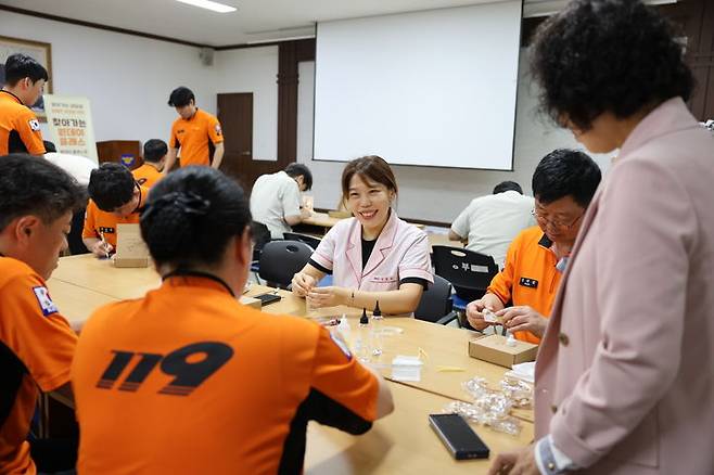 스트레스 검사와 향수·무드등 만들기 등 체험과 함께 각종 재난 상황에 직면하는 직원들의 상태를 점검하고 정서적 안정을 도모하는 시간을 가졌다.