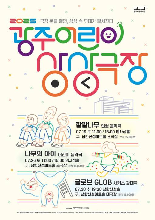 경기 광주 어린이상상극장에서는 7월 한 달간 공연 패키지 프로그램을 선보인다. 인형 음악극 ‘깔깔나무'(7월19일 11:00/15:00, 맹사성홀), 어린이 음악극 ‘나무의 아이'(7월26일 11:00/15:00 맹사성홀), 서커스 광대극 ‘글로브'(7월30일 19:30, 남한산성홀) 세 편이 잇따라 막이 오른다. 각 공연은 전석 1만5000원이고, 패키지로 예매하면 2만7000원에 관람 가능하다.