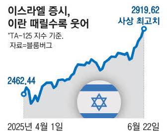 미국의 이란 핵시설 공습 직후 이스라엘 증시는 환호성을 질렀다. 이날 이스라엘 텔아비브 증권거래소의 TA-125는 1.8% 급등하면서 사상 최고치인 2919.62로 거래를 마쳤다. 로넨 메나헴 미즈라히 테파호트 은행 수석 이코노미스트는 로이터통신에 "미국이 이란의 주요 핵시설을 파괴한 것은 지역 안보 환경을 개선하고 이란의 핵 능력을 약화한다는 점에서 긍정적인 발전"이라며 "중장기적으로 전략적인 투자자들에게 실질적인 기회가 될 수 있다"고 설명했다.