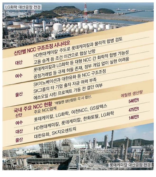 국내 최대 석유화학 산단인 여수는 대형 석유화학 기업인 롯데케미칼과 LG화학 간 구조조정 빅딜이 성사되는지가 관심사다. 한국을 대표하는 석유화학 기업 간 NCC 구조조정은 어떤 방식이라도 그 파급력이 상당할 전망이다. 롯데케미칼을 비롯한 주요 업체가 중심이 되면 단순한 설비 조정 수준을 넘어 인력, 공급망, 지역경제 등으로 전방위 후폭풍이 불가피하다.