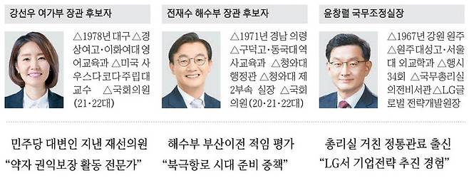 여가부에 '가족학 박사' 강선우 … 해수부에는 '부산 3선' 전재수