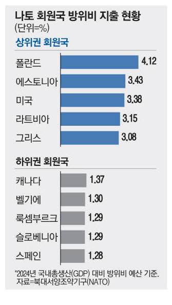 트럼프 행정부의 국방비 확대 요구에 미적거리던 북대서양조약기구(NATO·나토) 회원국들이 마침내 지출 목표를 국내총생산(GDP) 대비 5%로 대폭 늘리는 데 합의한 것이다.