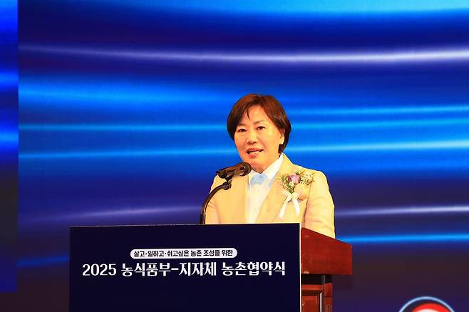 | ▲ 송미령 농림축산식품부 장관은 지난 5월 15일 21개 시장·군수와 함께 '농촌협약'을 체결하고, 살기 좋고 일하기 좋은 농촌 공간 조성을 위해 서로 협력할 것을 약속했다. |