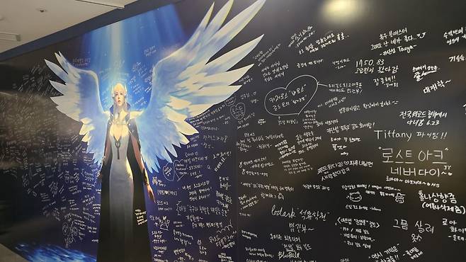 게이머들의 낙서는 첫날 이미 가득 찼다. 다채로운 팬심(?)을 확인할 수 있다.