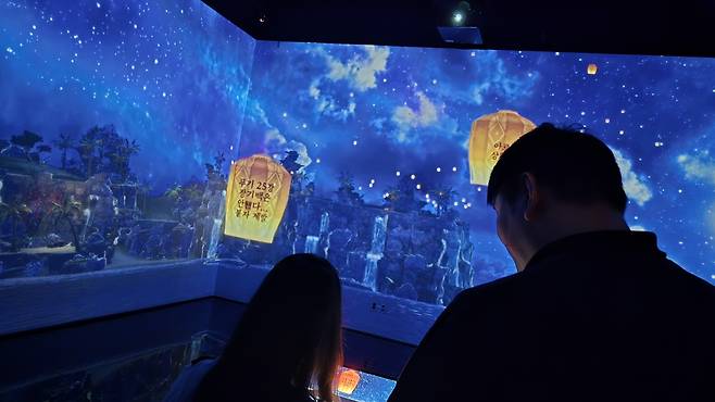 상영장 사이드에는 관람객 참여형 공간도 마련돼있다. 게임 속 캐릭터로 분장해 기념사진을 찍거나 화려한 미디어아트를 배경으로 거울 속 인생 사진을 남길 수 있는 포토존이 있다. 자신이 원하는 문구를 적어 게임 속 하늘로 날리는 ‘별 무리 언덕 풍등 날리기’도 준비되어있다.