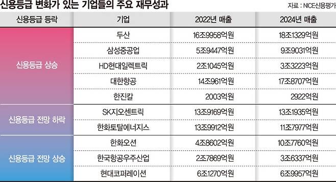 이처럼 두산을 비롯해 실적과 수주가 돋보인 삼성중공업, HD현대일렉트릭, 대한항공, 한진칼 등의 신용등급이 개선됐다.
