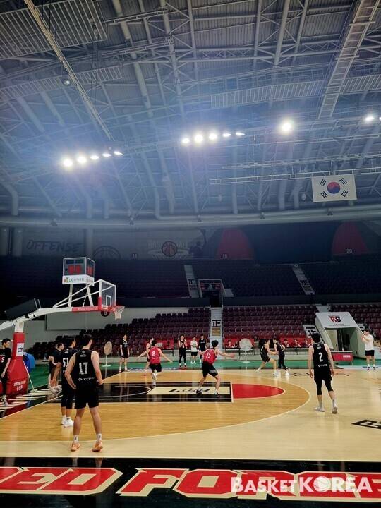 정관장은 가벼운 워밍업으로 두 번째 비시즌 단체 훈련을 시작했다. 이어 인터벌 트레이닝을 통해 점점 강도를 높였다. 이후 최승태 수석 코치의 주도로 실제 경기 상황을 가정해 드리블 훈련을 이어갔다.