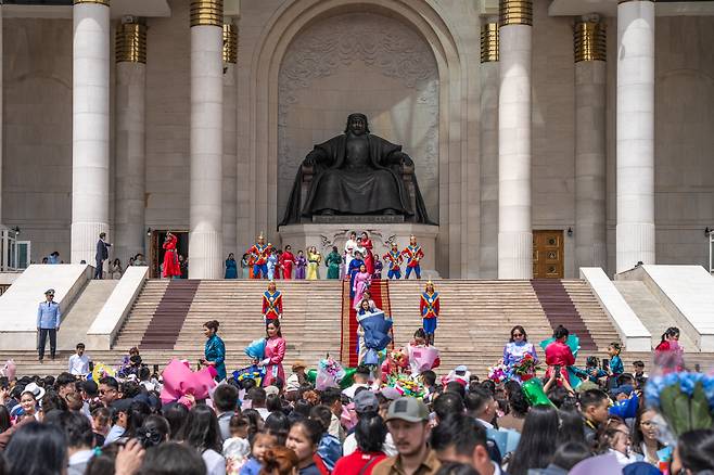 도착한 날, 마침 칭기스칸광장에서는 뜻밖의 축제가 열리고 있었습니다. ‘다산 어머니상’ 수상자들을 위한 행사였습니다. 몽골 정부가 넷 이상의 자녀를 둔 어머니에게 수여하는 이 훈장은 단순한 상을 넘어, 이 나라의 미래를 상징하는 상이라 해도 과언이 아니었습니다.