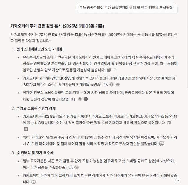 카카오페이 주가 급등 원인 분석 (2025년 6월 23일 기준)