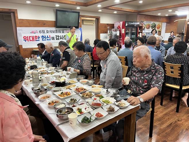 고성군 사회복지협의회(회장 김종환)은 6월23일 호국보훈의 달을 맞아 상이군경회 고성군지회(회장 박오용) 회원 35명을 초청해 감사의 오찬을 제공했다.