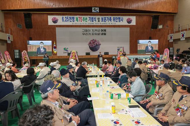 고성군은 6월21일 오전 고성군실내체육관에서 6.25전쟁 제75주년 기념식 및 제16회 보훈가족 위안행사를 열었다.