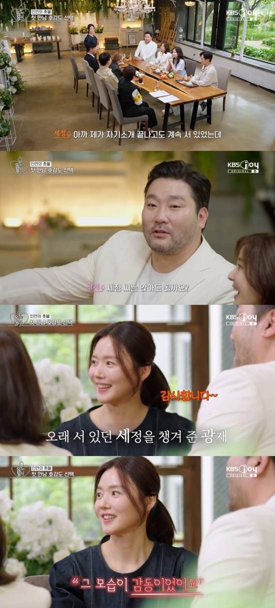 박광재는 "첫인상이다. 챙겨주고 싶은 느낌이 들었다"라며 강세정의 첫인상이 마음에 들었음을 털어놓았다.