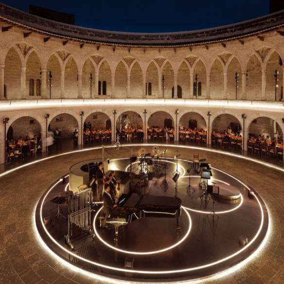 눈부신 햇살이 쏟아지는 초여름의 어느 날, 루이 비통이 마요르카의 역사를 품고 있는 벨베르 성에서 버츄오시티 하이 주얼리(Virtuosity High Jewelry) 컬렉션을 공개했다. 14세기 초에 지어진 원형 건축양식이 특징인 벨베르 성은 마요르카 섬을 한눈에 조망할 수 있는 아름다운 공간으로 유명하다. 루이 비통은 이 공간을 하이 주얼리 컬렉션을 소개하는 완벽한 무대로 활용했다. 쇼는 노을이 내려앉은 잔잔한 저녁에 시작했다. 성 안쪽 중앙에 배치된 오케스트라의 연주로 참석자들의 이목을 집중시킨 후, 모델들이 버츄오시티 하이 주얼리 컬렉션과 함께 오케스트라의 음율을 타고 런웨이를 거닐었다.