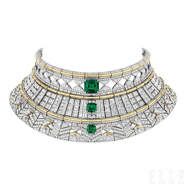 버츄오시티 하이 주얼리 컬렉션은 장인 정신에서 기반한 노하우와 창의성으로 가득했던 프랑스 19세기를 예찬하며 탄생했다. 총 12가지 테마의 유니크 피스 110점으로 구성된 컬렉션은 크게 거장의 세계(The World of Mastery)와 창의성의 세계(The World of Creativity) 라는 주제로 나뉜다. 하이 주얼리에 대한 루이 비통의 혁신적이고 감각적인 스토리텔링이 주입된 결과다. 첫 번째 컬렉션인 ‘거장의 세계’ 속에는 신비로운 오팔과 메종의 아이코닉한 V 형태의 셰브론 패턴을 활용해 조형적으로 재해석한 사보아(Savoir), 모든 것을 꿰뚫어보는 강렬한 눈을 그래픽적으로 표현한 키퍼(Keeper)와 프로텍션(Protection), 아이코닉한 다미에 패턴을 사용하고 건축적인 스톤 배열이 특징인 마에스트리아(Maestria)와 모뉴멘탈(Monumental), 마지막으로 루이 비통의 트렁크 메이킹에서 영감받아 이를 다이아몬드와 에메랄드로 담아낸 아포제(Apoge′)로 이어진다.