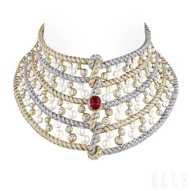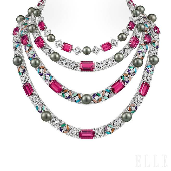 한편 ‘창의성의 세계’ 는 다이아몬드를 세팅한 골드 로프 장식이 인상적인 커넥션(Connection)으로 시작된다. 흐름과 파동을 구현한 디자인에 사파이어와 다이아몬드를 세팅한 모션(Motion), 풍성한 컬러 스톤의 조화가 돋보이는 플로레센스(Florescence)와 매혹적인 태양을 표현한 조이(Joy)로 이어진다. 그 다음,찬란한 별빛과 그 뒤로 번지는 후광을 주얼리로 재해석한 아우라(Aura)와 옐로골드와 옐로 다이아몬드의 강렬한 광채를 엿볼 수 있는 이터널 선(Eternal Sun)이 절정을 찍으며 컬렉션은 마무리된다. 장인 정신에서 시작해 무한한 창의성으로 이어지는 루이 비통의 여정. 메종의 핵심 철학인 ‘여행’이 하이 주얼리를 통해 또다시 출항한다. 이토록 경이롭고 신비롭게 말이다.