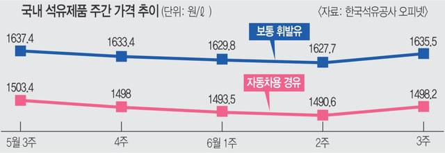 미국의 이란 핵시설 공습 등으로 유가 폭등 우려가 커지자 조금이라도 저렴한 가격에 주유하려는 시민들의 발길이 이어지고 있다. 한국석유공사 오피넷에 따르면 6월 셋째주 전국 주유소의 휘발유 평균 판매가격은 전주 대비 7.8원 오른 ℓ당 1635.5원으로 집계됐다. 경유 평균 판매가는 전주보다 7.6원 상승해 ℓ당 1498.2원이 됐다.