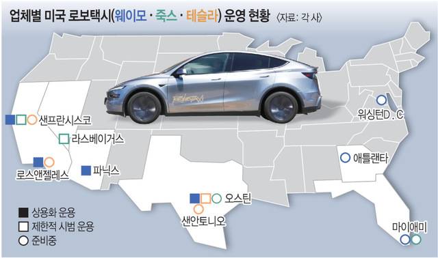 테슬라가 로보택시 시장에 참전하면서 독보적 1위였던 구글 웨이모와 본격적인 경쟁을 시작하게 됐다. 웨이모는 현재 미국 전역에서 1주에 25만건 이상의 유료 운행을 하고 있다. 아마존이 인수한 죽스(Zoox)도 최근 로보택시 시장에서 두각을 보이고 있다. 지난 18일 캘리포니아에 연간 1만대 생산이 가능한 로보택시 공장을 세웠다.