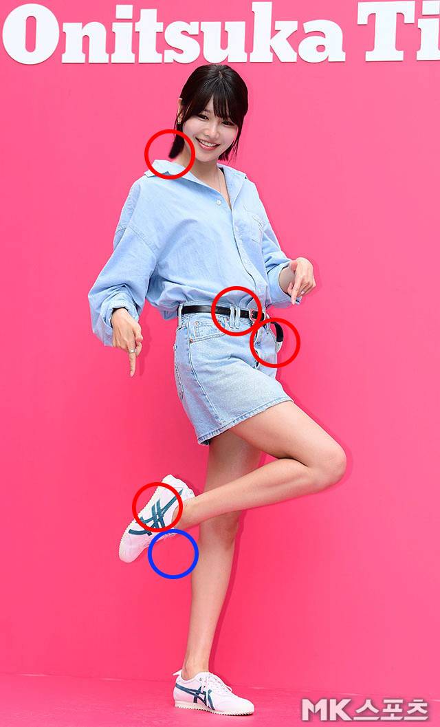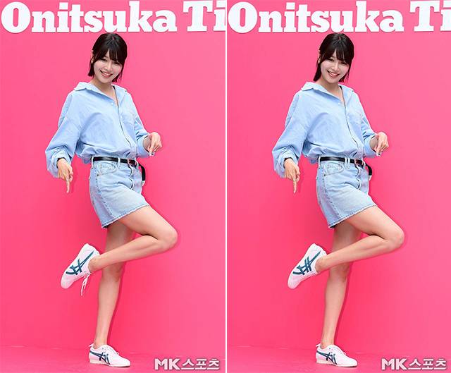 이날 행사에서 핫핑크 포토월 앞에 선 수영은 데님 셔츠와 미니스커트를 매치한 청청 패션을 완성했고, 여기에 화이트 스니커즈와 검정 벨트로 경쾌한 포인트를 더해 캐주얼하면서도 섹시한 비주얼을 선보여 신사동을 사로잡았습니다.