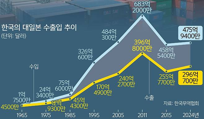 한국무역협회 국제무역통상연구원은 지난 19일 발표한 '한·일 국교 정상화 60주년, 한·일 기업협력의 현주소와 발전전략' 보고서에서 "2000년 이전에는 한국이 일본에서 주로 섬유 및 화학기계를 수입해 의류를 수출하는 등 수직적 분업 체계가 두드러졌다"며 "2000년 이후에는 반도체, 석유제품, 철강 등 주력 산업 중간재를 중심으로 양국 간 교역이 늘어나 수평적 협력관계가 강화된 것이 특징"이라고 분석했다.