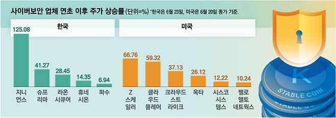 스테이블코인이 제도권 안으로 편입되면 클라우드 기반 금융 거래가 확산되면서 해킹·피싱·계정 탈취 등 보안 위협을 방어하기 위한 보안 솔루션 수요도 폭발적으로 증가할 것이라는 기대감 때문이다.