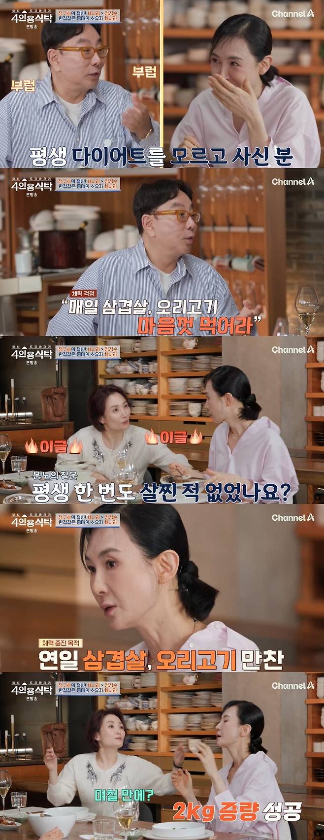 23일 방송된 채널A '절친 토큐멘터리 - 4인용식탁'에서는 이날 MC로 방송에 합류한 박경림이 크리에이티브 디렉터 정구호와 절친 채시라, 정경순을 만났다.