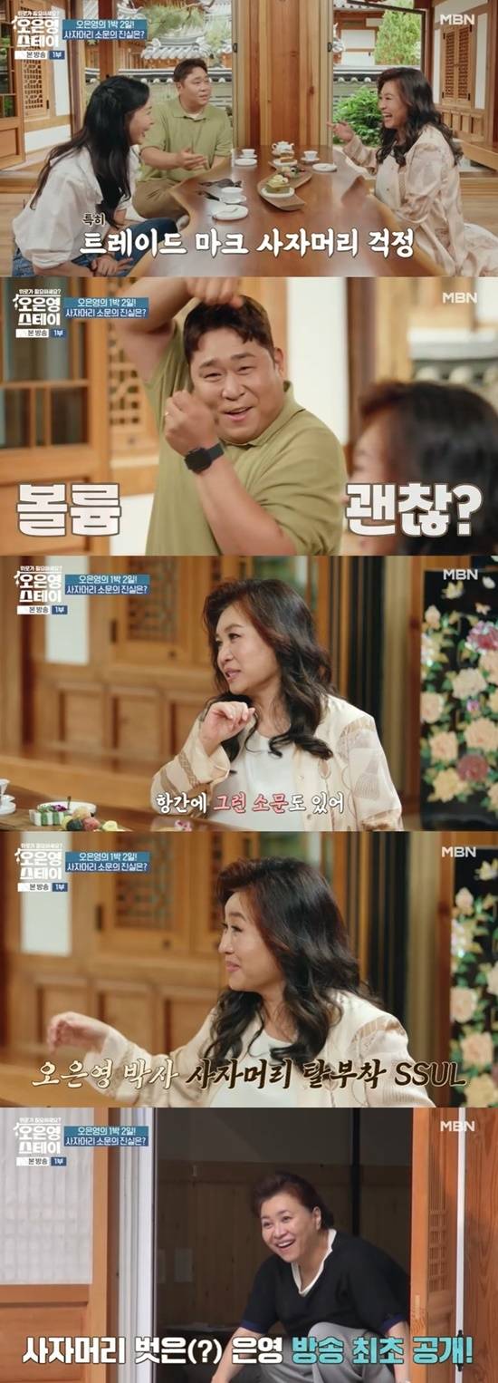 "머리 볼륨은 어떡하냐"는 문세윤의 말에 오은영은 "약간 고민이다. 항간에는 그런 소문도 있더라. 내가 집에 가서 (사자머리 가발을) 집에 떼어놓고 나중에 다시 쓴다고 한다"고 말해 웃음을 안겼다.