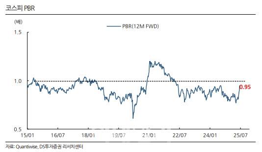 이어 “상법 개정 가능성이 높아져 주주환원이 확대될 가능성, 배당 확대와 함께 분리과세 기대가 반영되는 중”이라며 “주식 투자에 있어서 자본소득에만 기대지 않는 배당소득 확대는 위험자산인 주식의 리스크 프리미엄을 낮춘다. 이는 낮은 요구수익률, 즉 밸류에이션 확대를 의미한다”고 덧붙였다.