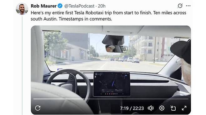 테슬라는 전날 약 10대의 모델Y 차량을 투입해 텍사스주 오스틴의 제한된 구역에서 소수의 소셜미디어(SNS) 인플루언서 등을 대상으로 로보택시 서비스를 제공했습니다.