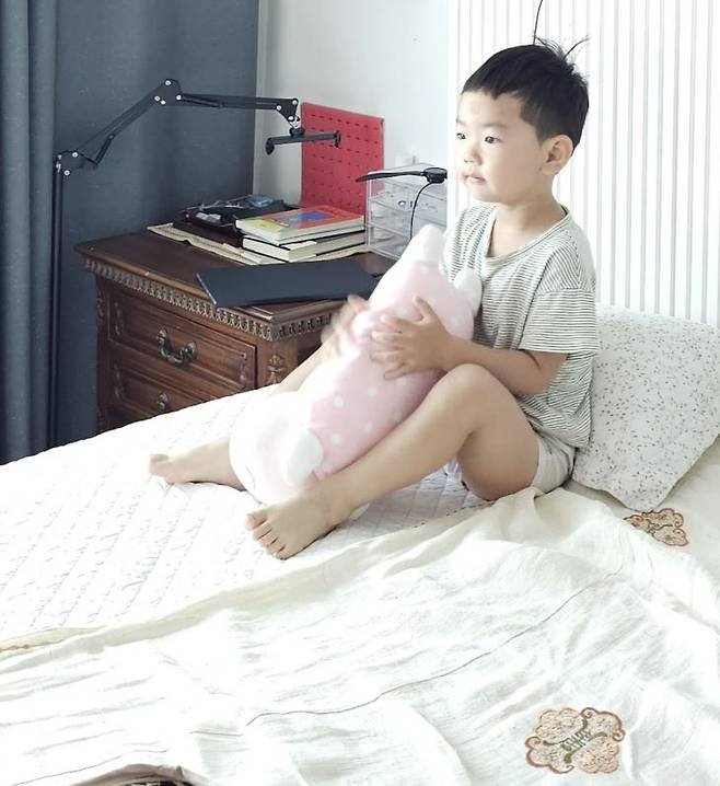 이와 함께 공개한 사진 속 이경실 손자 이훈은 어린이집 친구 이름 '지안이'를 연신 말하는 모습.