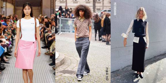 트렌드는 언제나 런웨이를 통해 증명된다. 이번 시즌, 주요 패션 하우스들은 저마다의 방식으로 라이브러리언 코어 룩을 선보이며 지적인 존재감을 드러냈다. 그중 가장 강렬한 인상을 남긴 건 사카이. 크리에이티브 디렉터 아베 치토세는 모델들의 손에 실제 책을 들려 런웨이에 세웠다. 셔츠에 니트 베스트를 껴입거나 데님 점프슈트를 입고 안경을 쓴 채 무대를 걷는 모습은 마치 청춘 캠퍼스의 한 장면 같았다. 관객들 사이에서 "쇼가 끝나면 곧장 도서관으로 향할 것 같다"는 농담 섞인 반응이 나올 정도. 클래식의 정수인 샤넬도 프레피 룩을 현대적으로 재해석하며 트렌드에 동참했다. 오버사이즈 셔츠와 카디건 셋업을 원피스처럼 연출해 자칫 고루할 수 있는 분위기에 경쾌함을 더했다. 미우미우 역시 색색의 펜슬 스커트에 백팩을 조합해 전형적인 범생이 룩을 트렌디하게 끌어올렸다. 가브리엘라허스트 역시 주목할 만하다. 유머러스한 컬러 프린트의 폴로 셔츠와 허리선을 높인 하이웨이스트 슬랙스로 너드 스타일을 세련되게 풀어냈다. 도쿄와 상하이 컬렉션에서도 흐름은 분명했다. 일본 기반의 하이크는 티셔츠에 체크 셔츠를 겹쳐 입고 슈트 팬츠를 착용하는 식의 과감한 믹스 매치를 즐겼다. 여기에 플랫폼 샌들과 스냅백으로 스트리트 무드를 한껏 끌어올렸다. 한편 상하이의 신예 슈슈통은 셔츠부터 니트 베스트까지 겹겹이 레이어드한 상의에 미디스커트를 매치하고, 무테안경과 시스루 삭스, 키튼 힐로 마무리해 은근한 관능미를 드러냈다.