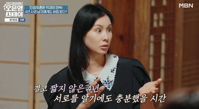 폐업 후 4년 만난 남자친구와 이별까지 겪었다는 원테이블에 고소영은 "4년이란 세월이 서로를 잘 알기에 충분한 시간이다. 나쁜 일이 있을 때 가장 가까이서 내 편이 되어줘야 할 사람이 떠났으니 마음의 상처가 있었을 것"이라며 아픔을 헤아렸다.