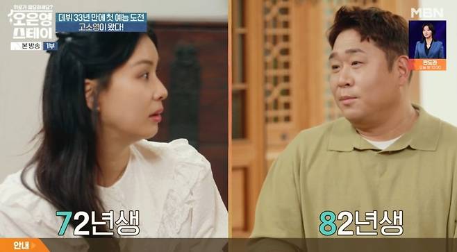 뒤이어 등장한 문세윤은 "영광이다. 내 어릴 때 책받침 스타였다"라는 말로 고소영을 향한 팬심을 전했다. 문세윤은 1982년생으로 1972년생인 고소영과 10살 차이. 그럼에도 문세윤이 "우린 또래"라고 주장하자 고소영은 "한참 동생이다. 앞자리가 다르다"며 웃었다.