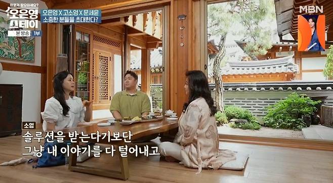 이에 고소영은 "나한테 필요하다. 내가 평상시에 그렇게 푼다. 뭔가 솔루션을 받는다기보다 그냥 내 이야기를 털어놓고 집에 오면 해소가 된다"며 공감을 표했다.