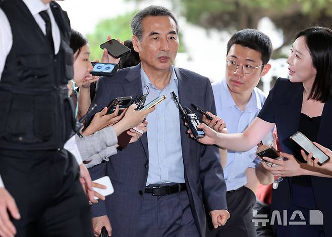 [서울=뉴시스] 이영환 기자 = 김건희 여사 의혹을 수사하는 민중기 특별검사가 24일 오전 서울 서초구의 사무실로 출근하며 취재진의 질문에 답하고 있다. 2025.06.24. 20hwan@newsis.com