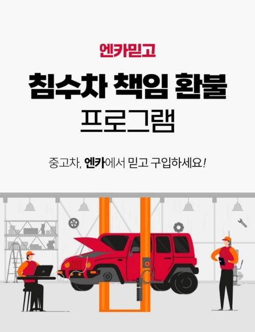 엔카닷컴이 장마철을 앞두고 침수차 구매에 대한 소비자 우려를 해소하기 위해 '엔카믿고' 서비스 이용자 대상으로 '침수차 100% 책임 환불 프로그램'을 진행한다고 24일 밝혔다.