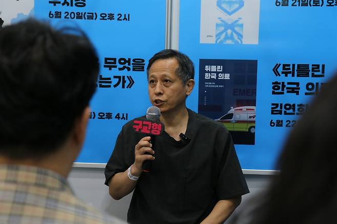 | ▲ 지난 19일 서울 강남구 코엑스에서 열린 서울국제도서전에서 구교형 목사가 '교회 밖에서 만난 이웃들의 진짜 삶'이라는 주제로 북토크를 하고 있다. |