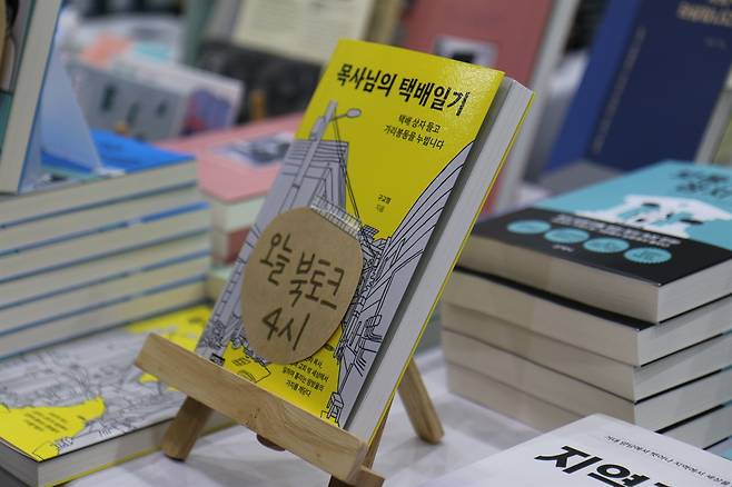 | ▲ 2025서울국제도서전 '산지니' 출판사 매대에 진열된 <목사님의 택배일기> |