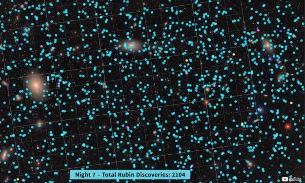 루빈천문대의 가장 뛰어난 특성 중 하나는 대형망원경을 이용한 반복적인 관측으로 모든 천체의 밝기 변화를 포착할 수 있다는 것인데, 이 영상에서는 시험 관측에서 발견된 46개의 맥동 변광성(RR Lyrae) 중 3개의 밝기 변화를 예시로 보여준다.