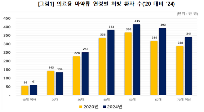 지난해 한 번 이상 처방받은 환자는 2천1만명(중복제외)으로, 우리나라 국민 10명 중 4명이 의료용 마약류를 처방받았습니다.