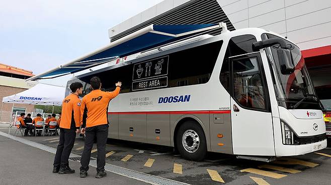 ▲ 두산그룹은 재난·재해 현장에서 소방관 및 구호 요원에게 휴식 공간을 제공해 컨디션 회복을 돕는 '재난구호요원 회복버스'
